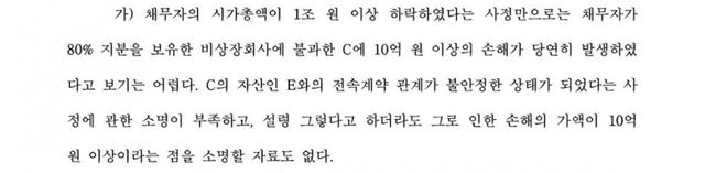 채무자의 시가총액이 1조 원 이상 하락하였다는 사정만으로는 채무자가 80% 지분을 보유한 비상장회사에