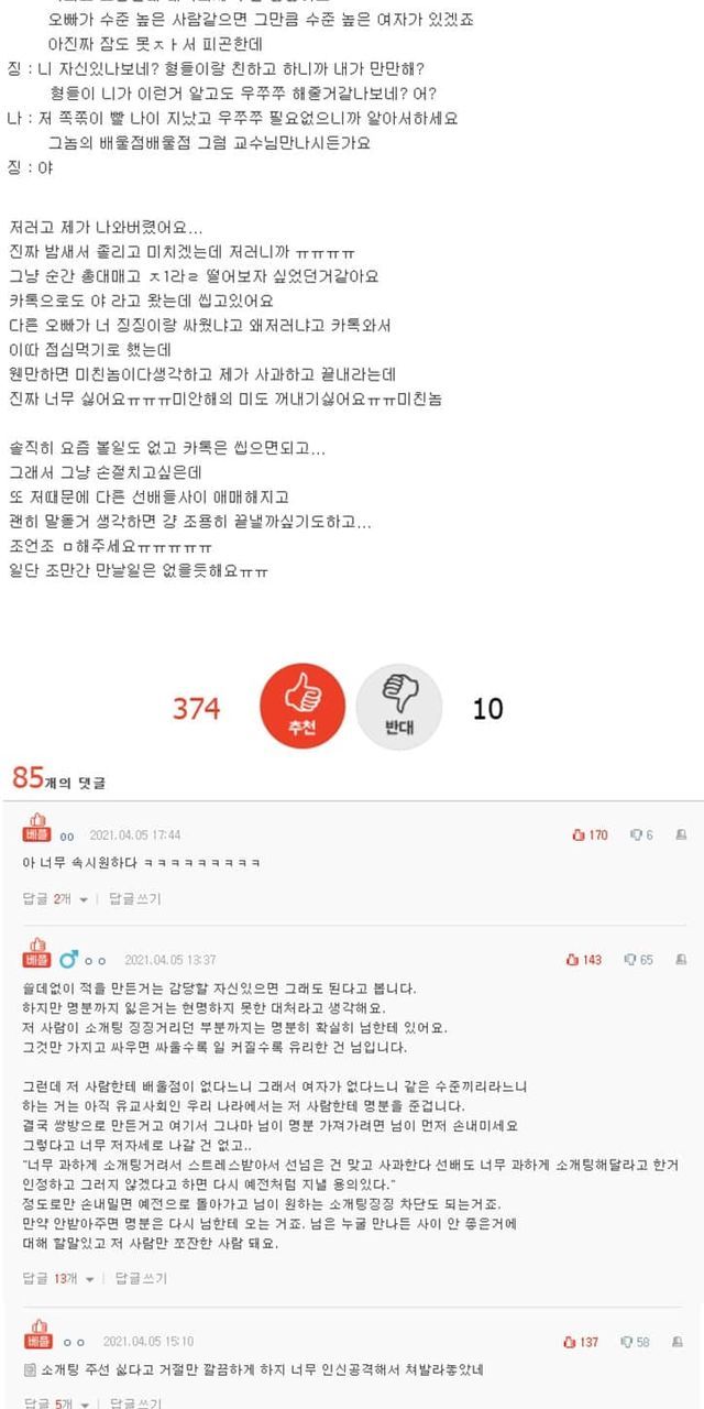 소개팅시켜준 징징이 선배랑 싸웟는데 사과해야 하나요