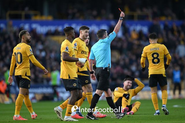 울버햄튼도 퇴장을 당했다. 후반 25분 옐로 카드가 한 장 있던 고메스가 팀버의 발을 밟아 옐로 카드를 더 받게 됐다. 울버햄튼과 아스널 모두 10명이 됐다.