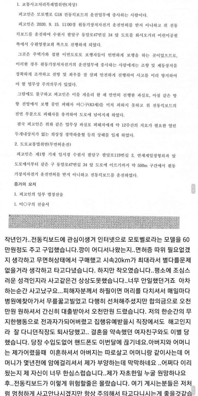 킥보드로 사람쳐서 5천만원 물어준 사람