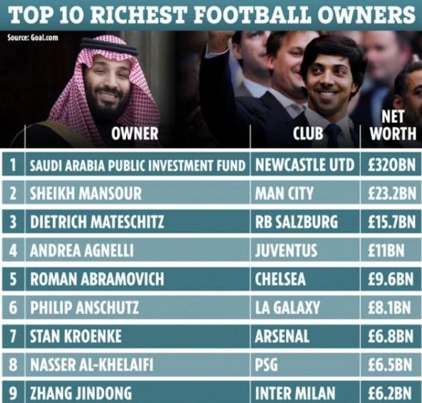 영국 매체 '더 선'에 따르면 "뉴캐슬의 실질적인 구단주 무함마드 빈 살만 사우디 왕세자의 자산은 3200억 파운드(약 572조원)다. 맨시티 구단주 만수르의 자산(약 35조원) 10배가 넘는다"라고 알렸다.