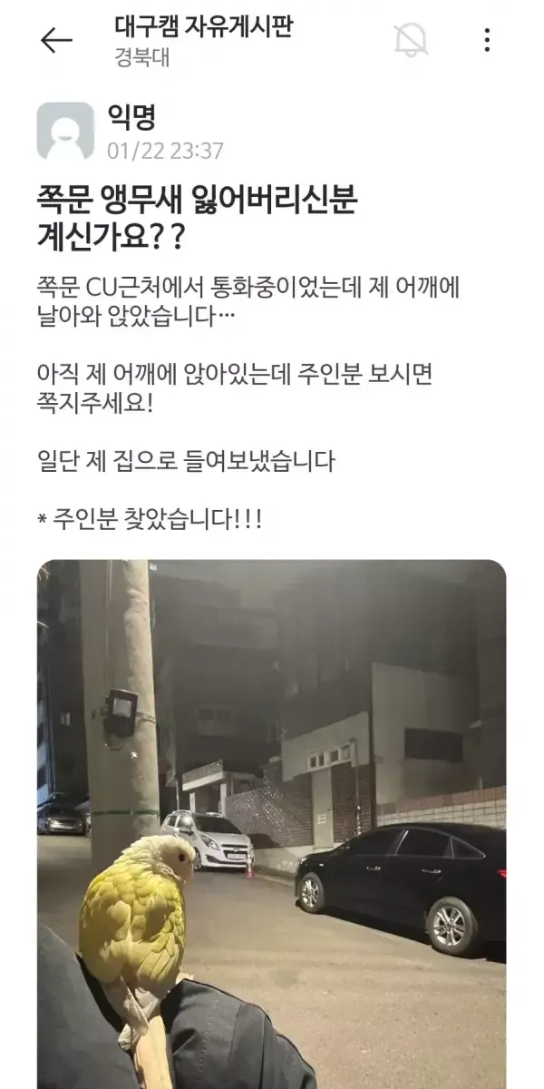 이제 하다하다 앵무새까지 잃어버리는 경북대생,,
