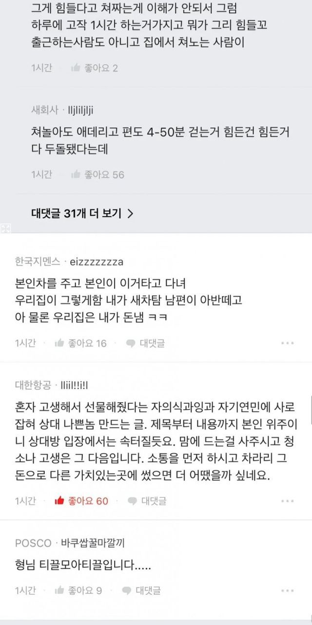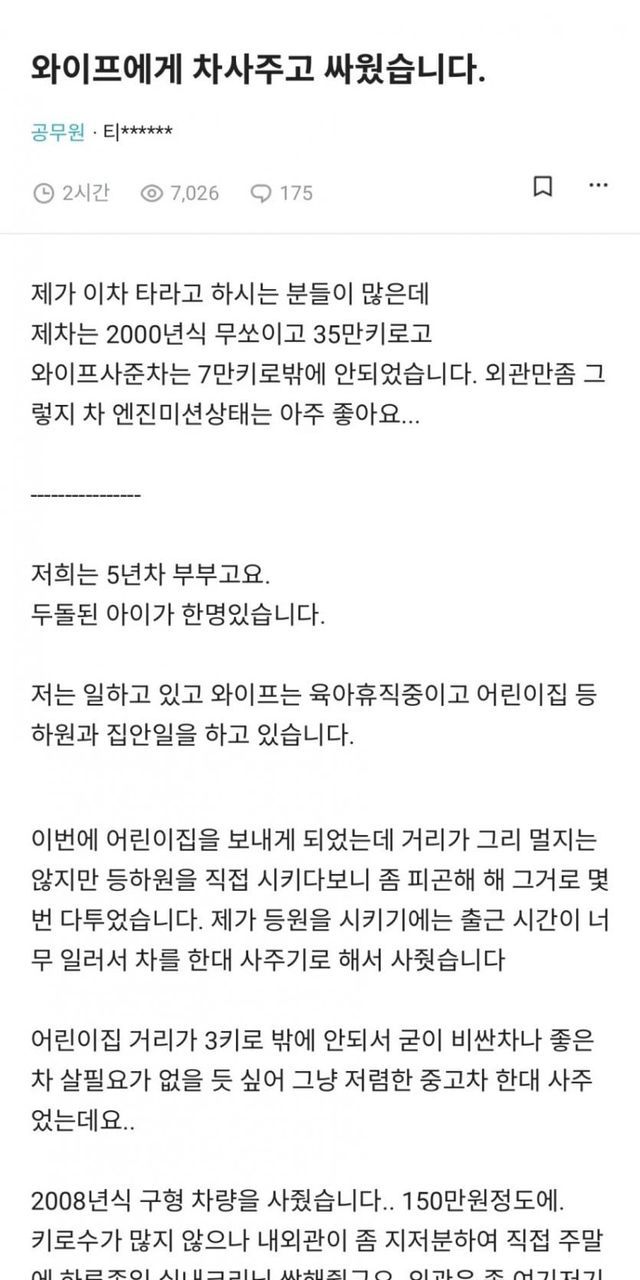 블라)와이프에게 차 사주고 싸웠습니다