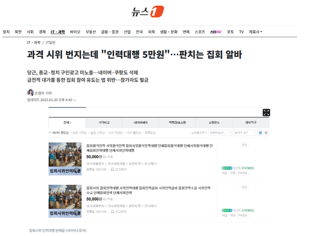 앞서 당근에서도 '토요일 집회에 참여할 용모단정한 여학생을 구한다'는 시급 알바 구인 글이 올라왔다가 삭제됐다.