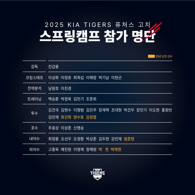 KIA는 26일 “퓨처스 선수단은 1월 31일부터 일본 고치시 동부 야구장에서 캠프를 차리고 2025 시즌을 위한 본격적인 담금질에 들어간다”라고 전했다.