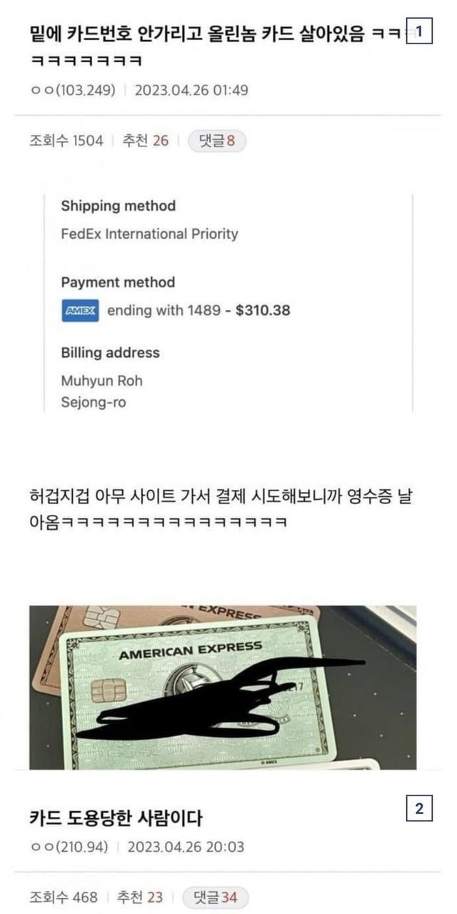 싱글벙글 디시에 카드사진을 함부로 올리면 안되는 이유