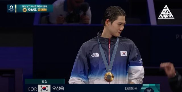 파리 올림픽 금메달 시상식에 오른 오상욱 / 스브스스포츠 유튜브