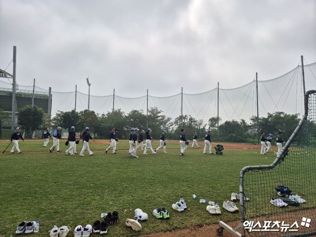 오후 5시 30분 이른 저녁을 먹은 이후에는 7시부터 야간 훈련까지 예정돼 있다. 야수조 전원이 단 한명의 열외 없이 실내훈련장에서 구슬땀을 흘린다.