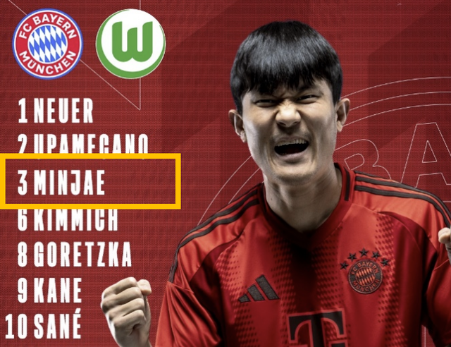 이날 경기에서 뮌헨은 마누엘 노이어 골키퍼를 비롯해 하파에루 게헤이루, 김민재, 다이어, 키미히(이상 수비수), 레온 고레츠카, 알렉산다르 파블로비치, 세르주 그나브리, 자말 무시알라, 레로이 자네(이상 미드필더), 해리 케인(공격수)으로 선발 라인업을 꾸렸다.