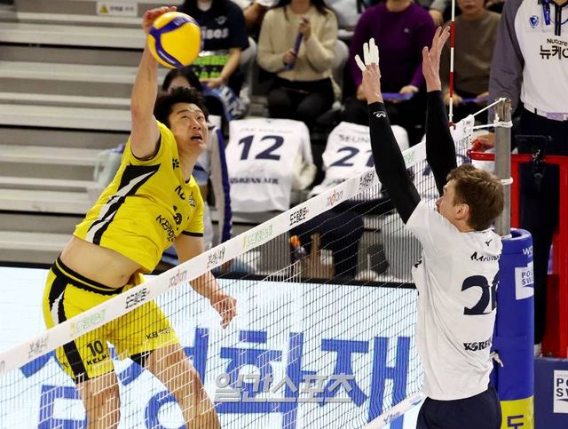 프로배구 남자부 KB손해보험이 우리카드를 상대로 완승을 거뒀다. 나경복이 12점을 올리며 활약했다.