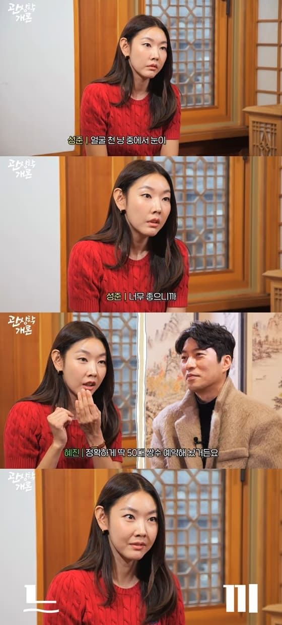 또한 역술인은 한혜진의 관상을 보며 "눈매가 올라간 것은 양의 기운을 뜻한다. 보조개는 매력을 발산하는 데는 좋지만, 남자와의 인연에서는 다소 방해가 될 수 있다"고 설명했다.