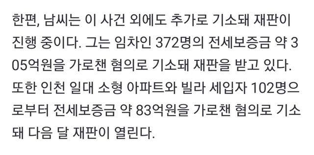 그나마 현재 다른 전세 사기죄로 재판받는 중이라