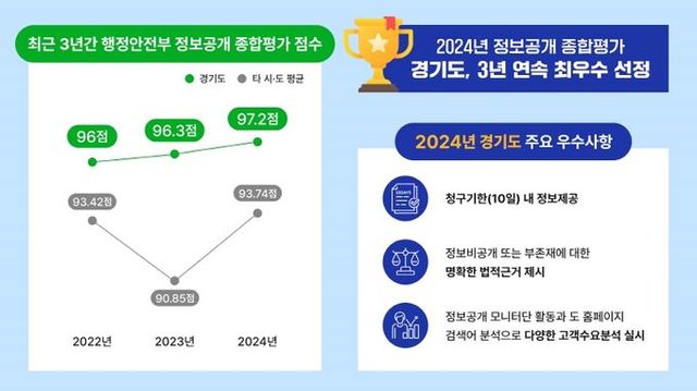 [와이뉴스] 경기도는 행정안전부가 실시한 ‘2024년 정보공개 종합평가’에서 3년 연속 최우수 등급을 받았다고 26일 밝혔다.