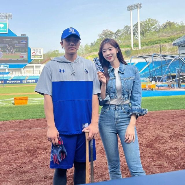 저 야구선수들 덩치들한테도 안꿀리는 진달래 아나운서