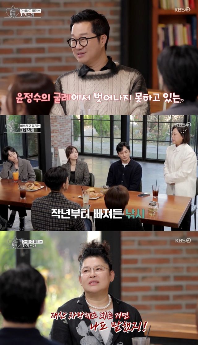 이어 자기소개에 나선 김숙은 20살 때부터 방송을 시작했다고 알린 뒤 "많은 분들이 오해를 하고 계신다. 아직도 윤정수랑 같이 살고 있다고 오해를 하신다. 계속 재방송이 되고 유튜브에서 나오기 때문"이라면서 '가상 남편'이었던 윤정수와는 7~8년 전에 이미 끝난 상태라고 덧붙였다.
