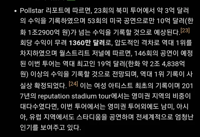 콘서트 역사상 가장 높은 수익을 올린 투어