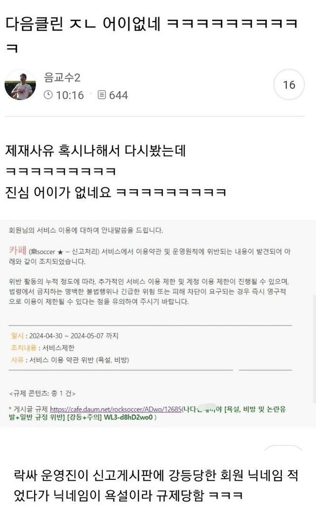 경고 누적으로 순식간에 아이디 영구정지 당함 ㅋㅋ