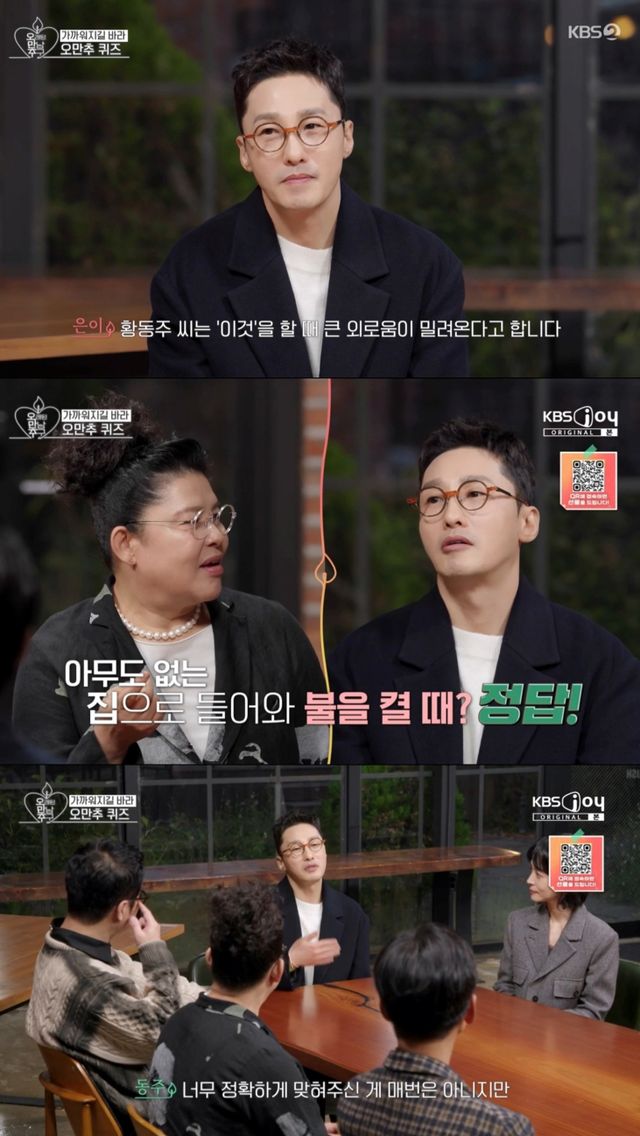 우희진의 퀴즈 후 마지막 순서로 황동주의 퀴즈가 공개됐고, 송은이는 "황동주 씨는 '이것'을 할 때 큰 외로움이 밀려온다고 한다"는 문제를 냈다.