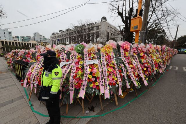 그러나 윤 대통령 탄핵 심판이 진행되는 헌법재판소 앞이나 정부서울청사, 서울서부지방법원 등 다른 주요 집회 장소에도 화환이 늘어서 있어 화환 처리 문제는 이어질 전망이다. 헌재는 현재 통행 지장과 보행자 안전사고 예방을 이유로 화환 설치를 막고 있으며, 추가로 오는 화환은 돌려보내는 것으로 알려졌다.