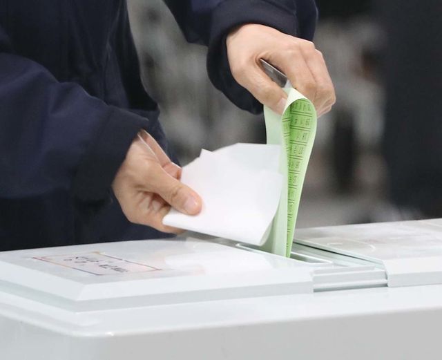 제22대 국회의원 선거일인 2024년 4월 10일 경기 성남시 중원구 성남종합운동장 씨름장에 마련된 투표소에서 유권자들이 투표를 하고 있다. / 뉴스1