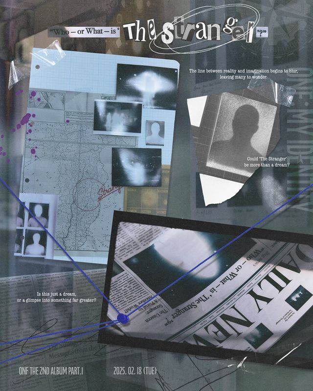 온앤오프는 오늘(27일) 0시 공식 SNS에 정규 2집 Part.1 ‘ONF:MY IDENTITY’의 커밍순 이미지를 공개했다. 해당 사진에는 신문과 지도, 여러 이미지의 조각이 콜라주로 담긴 가운데, ‘Who—or What—is The Stranger?’(스트레인저는 누구 혹은 무엇인가?)라는 의문의 문구가 등장했다.