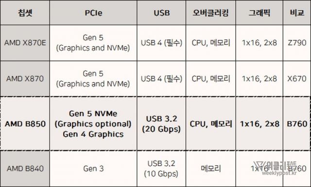 # B850 칩셋은 X870 칩셋 대비 뭐가 다른가?