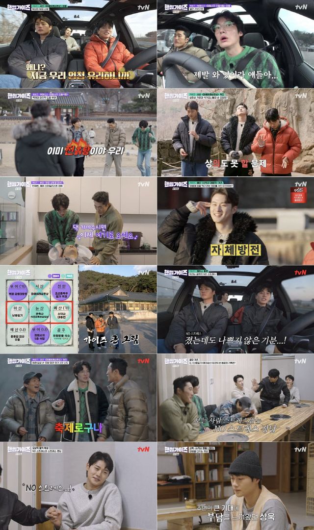 이날 방송은 ‘가이즈’ 이이경, 신승호, 오상욱이 빙고를 만드는데 주요한 격전지인 부여(가)를 ‘핸썸즈’에게 빼앗기는 모습으로 시작됐다. 이에 ‘가이즈’는 ‘핸썸즈’의 빙고를 막기 위해 서산으로 행선지를 변경했지만, 신승호는 “지금 우리 역대급 페이스”라며 서로를 독려했고 오상욱은 “형들 혹시 스트레스 받으신 거 아니죠?”라고 물으며 여전히 ‘NO스트레스’를 추구했다.