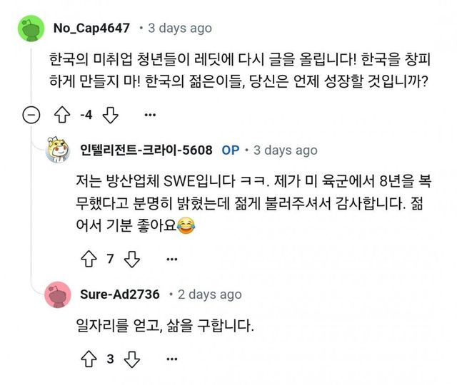 한국인들한테 하는소리라고 생각하며 완전게 웃고있음