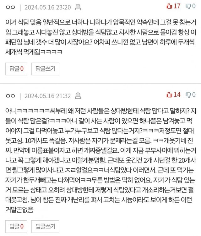 부부끼리 식탐문제 어떻게 해결하셨나요?