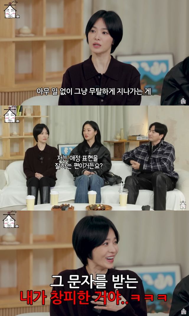 송혜교는 전여빈의 애정표현을 잘한다고 하면서 "가끔 애교 있고, 표현을 잘하는 건 여빈인데. 가끔은 내가 창피하다"며 웃기도 했다.