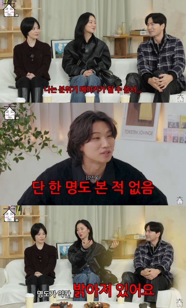 전여빈은 "진욱 선배님이 가진 힘 중에 신기한 힘"이 있다고 이야기하면서 "선배님이 말이 많지 않으시거든요? 그런데 이 공간에 딱 들어오는 순간 주변 명도가 약간 밝아져 있다"고 말했다. 이를 들은 이진욱은 "노력 많이 합니다"라면서 웃었다.