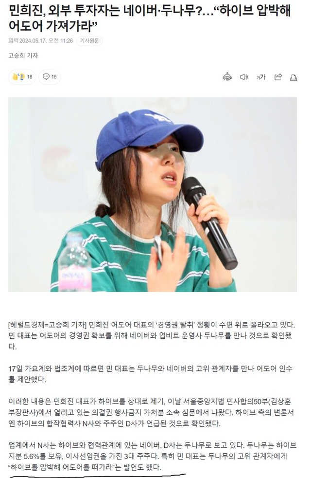 하이브가 내세운것 : 무당이 내부인사개입,경영개입한 증거 , 전속 계약해지권 요구한 증거 , 네이버두나무 접촉한 증거