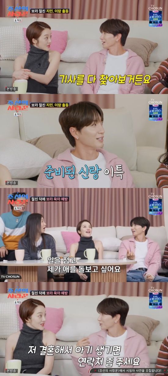 또 이특은 황보라의 영상을 보던 중 육아에 대한 정보를 언급했다. 황보라는 "이런 걸 어떻게 다 아냐"라며 깜짝 놀랐고, 이특은 "기사를 다 찾아본다. 예전에 (육아에 대한) 이런 걸 다 찾아봤다"라며 귀띔했다.