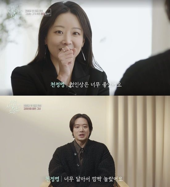 천정명은 "제가 딱 보는데 김희선 씨를 닮은 것 같더라. 가만히 있을 때랑 시선이 아래랑 볼 때랑 약간 턱을 들 때 넘 닮아서 깜짝 깜짝 놀랐다. 진짜 닮은 것 같다"고 감탄했다.