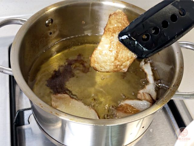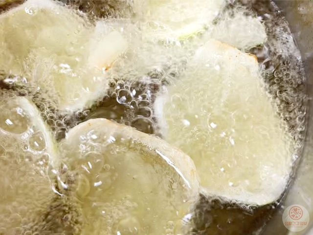겉껍질도 버리지 말고 같이 튀겨야 효과가 더 좋답니다~!