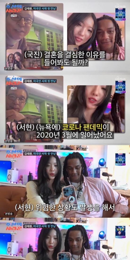 또 김국진은 "서현이는 데빈하고 평생 함께하려고 하게 된 그 이유를 들어봐도 될까?"라며 궁금해했고, 김서현은 "우리가 팬데믹이 딱 여기는 (2020년) 3월에 일어났었다. 그때 사실은 제가 살고 있는 곳이 할렘이었는데 위험한 상황도 발생해서"라며 회상했다.