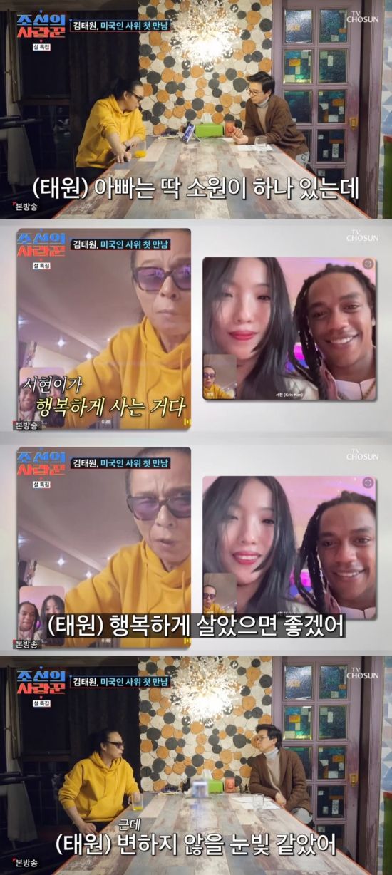 김태원은 40분가량 대화를 나누고 영상통화를 종료했고, 김국진은 "사위 데빈 본 느낌은 어땠냐"라며 질문했다. 김태원은 "눈빛 같은 건 연출이 시간을 오래 끌 수가 없다. 드러난다. 변하지 않을 것 같은 눈빛이다. 나는 너무 잘 어울린다고 생각했다"라며 안도했다.