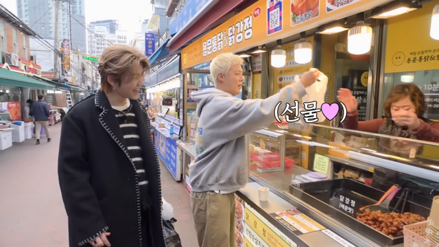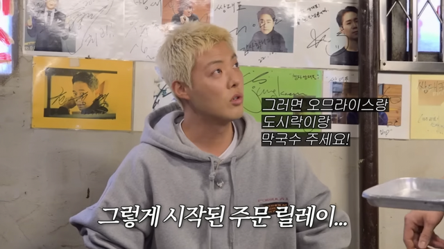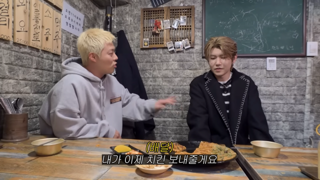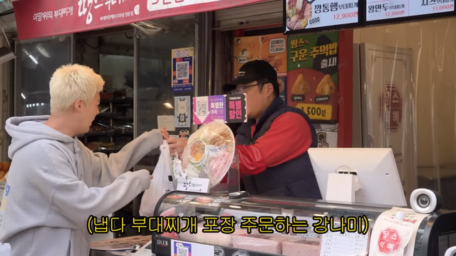 그의 손엔 선물한 포장음식으로 한가득