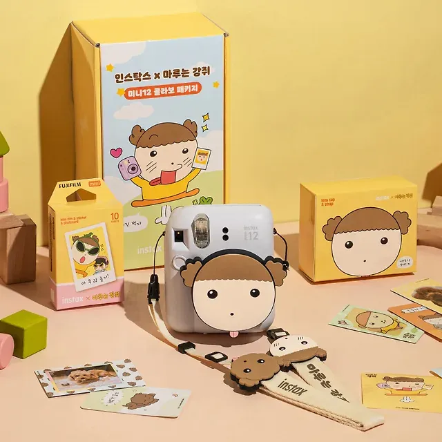 한국후지필름은 마루는 강쥐 캐릭터를 즉석카메라 ‘인스탁스 미니12’에 녹여낸 한정판 패키지를 선보인다. 인스탁스 미니12의 아기자기한 외형과 캐릭터의 유쾌하고 독창적인 매력을 결합한다. 기존 웹툰의 강력한 팬덤은 물론이고 귀여운 캐릭터를 선호하고 기획 상품 수집을 활발히 하는 10~20대 여성 소비자들을 적극 공략한다. 패키지의 귀여운 외관 덕에 여행지 등 기념할 만한 곳에서 카메라 활용도가 더 높아진다.‘마루는 강쥐’ 협업 제품은 카카오톡 선물하기에서 단독으로 판매한다. 먼저 미니12 카메라 패키지는 ‘미니12 카메라 5종 중 택1’ ‘렌즈 덮개 & 끈’ ‘필름 10매’ ‘프레임 스티커 10종 1세트’ ‘포토카드 10종 1세트’ ‘빅데코스티커 3종 1세트’로 구성한다.