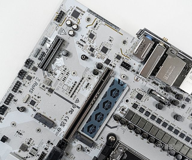 겉모습만 봐도 매력적이다. 스틸 그레이와 화이트 색상이 조화를 이룬 디자인은 한눈에 시선을 사로잡는다. PCB 표면에는 디지털 감성을 자극하는 독특한 그래픽 패턴이 적용되어, 단순한 메인보드 이상의 시각적인 매력을 발산한다.