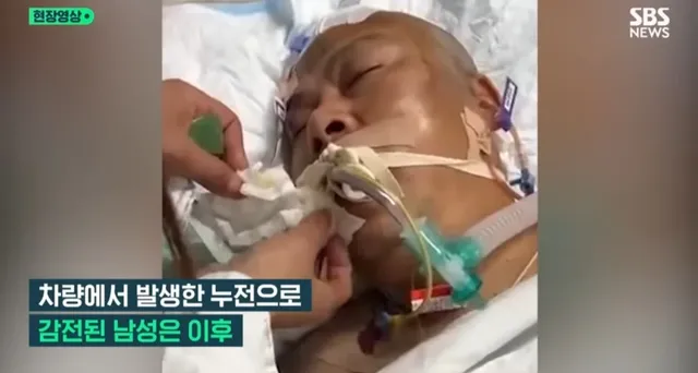 차산지 20일만에 차량 내부에서 감전당하고 뇌출혈로 의식불명