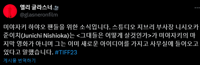 죽을 때까지 은퇴 안 할거 같기는 했음 ㅋㅋ 지브리가 제대로 된 후계자가
