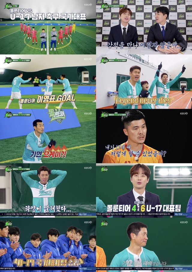 27일 방송된 KBS 설 특집 ‘뽈룬티어’에서는 한국 축구의 미래를 책임질 U-17 남자축구 국가대표팀과의 깜짝 평가전이 공개됐다.