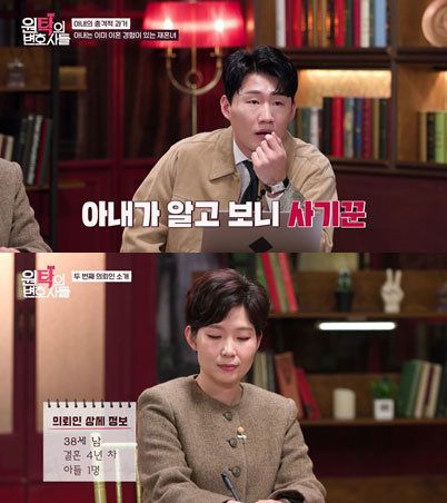 하지만 아내의 임신은 거짓 임신이었다. 직업은 노래방 도우미로 학력, 가정 환경 모두 거짓이었다. 이혼한 경험도 있었다. 이혼한 남편과는 계속해서 만남을 가지며 불륜 중이었고, 두 사람 사이에는 아들도 존재했다. 이를 확인한 3 MC는 “해외 토픽 감이다”라고 입을 모았고, 탁재훈은 “정말 부지런하게 산다”, 이지혜는 “스케줄이 너무 많다”며 혀를 내둘렀다.