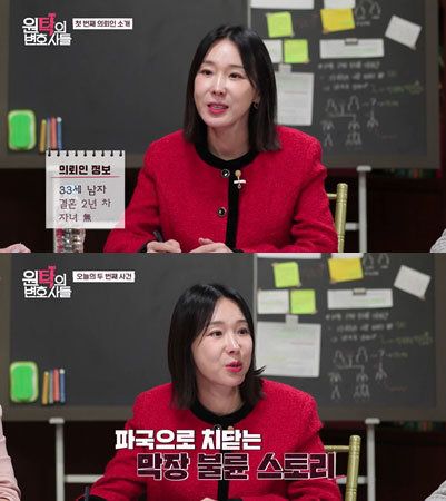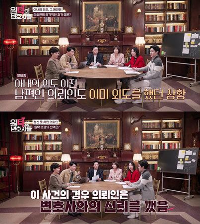 이날 방송은 이혼 사건 마다 계속되는 반전을 통해 시청자들을 충격으로 몰아넣었다. 3명의 변호사들은 사건을 분석하며 혼인 취소 사유 조건 등을 비롯해 불륜 소송 기간, 불륜으로 인한 이혼 시 재산분할, 양육권, 양육비, 위자료 등 청구 등을 안내했다.
