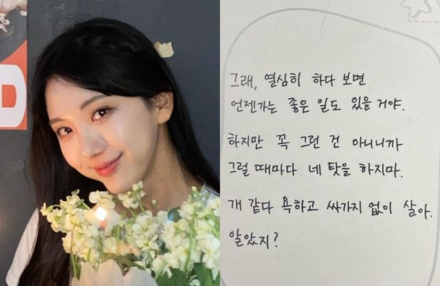 이와 함께 게시한 사진에는 "그래, 열심히 하다 보면 언젠가는 좋은 일도 있을 거야. 하지만 꼭 그런 건 아니니까 그럴 때마다 네 탓을 하지 마. 개 같다 욕하고 싸가지 없이 살아. 알았지?"라는 글이 적혀 있다. 해당 문구가 고인이 직접 작성한 것인지는 알 수 없으나, 의미심장한 내용으로 누리꾼들에게 재조명됐다.