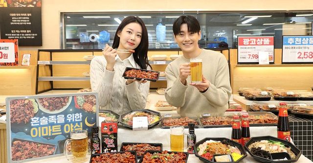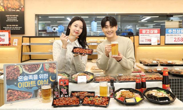 2024년 11월 27일 서울 용산구 이마트 용산점에서 모델들이 곱창, 막창, 닭발 유산슬 등 이마트 키친델리 안주류를 소개하고 있다. / 뉴스1