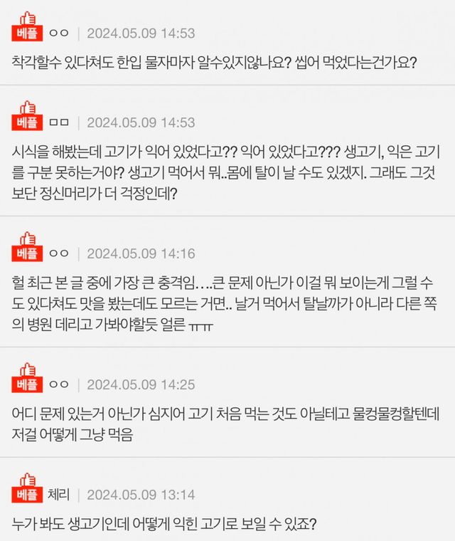 재워둔 고기를 생으로 먹은 남편 ㄷㄷ