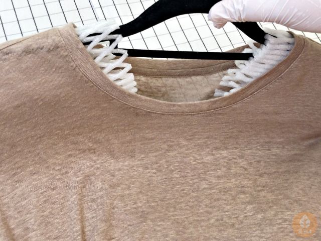 얇은 옷걸이의 어깨 부분에 과일보호망을 끼우면