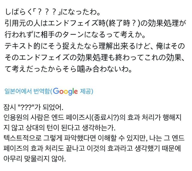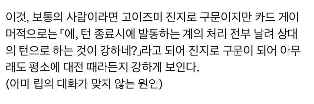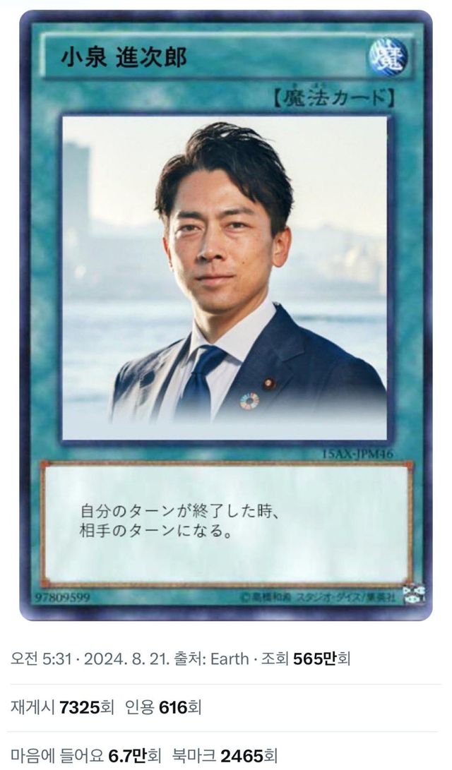 [자신의 턴이 종료됐을 때, 상대의 턴이 된다.]는 고이즈미 신지로식 개그 카드를 누군가가 올렸는데